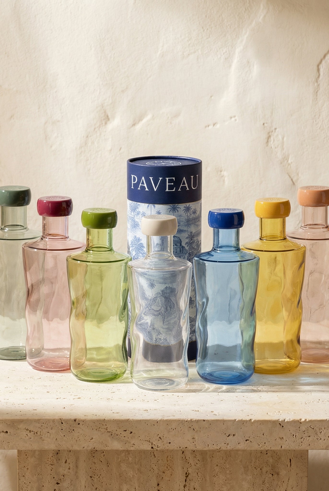 Wähle deine Farbe: Blau, Grün, Amethyst, Grau, Terrakotta, Transparent oder Amber und bring Leben auf deinen Tisch. Jede Paveau Flasche kommt in einer edlen Geschenkbox, so schön, dass du sie kaum verschenken willst.