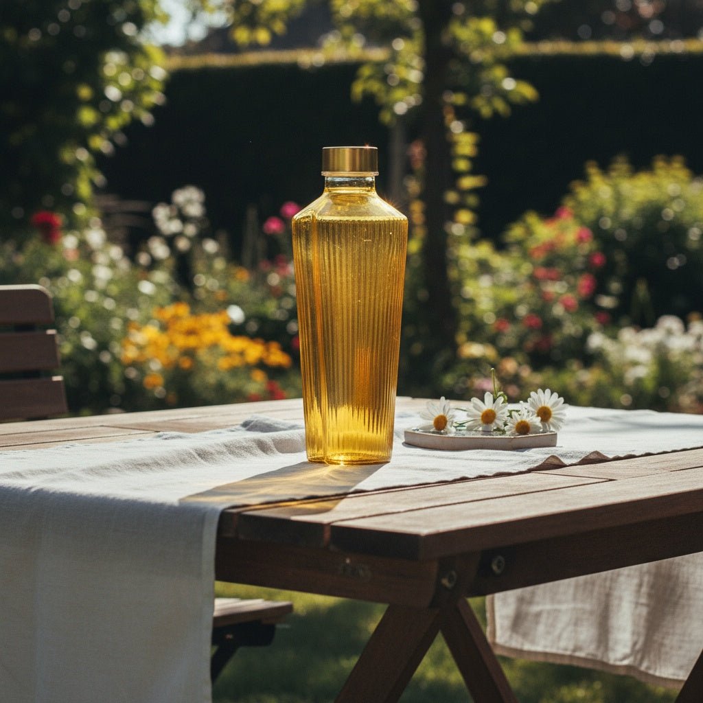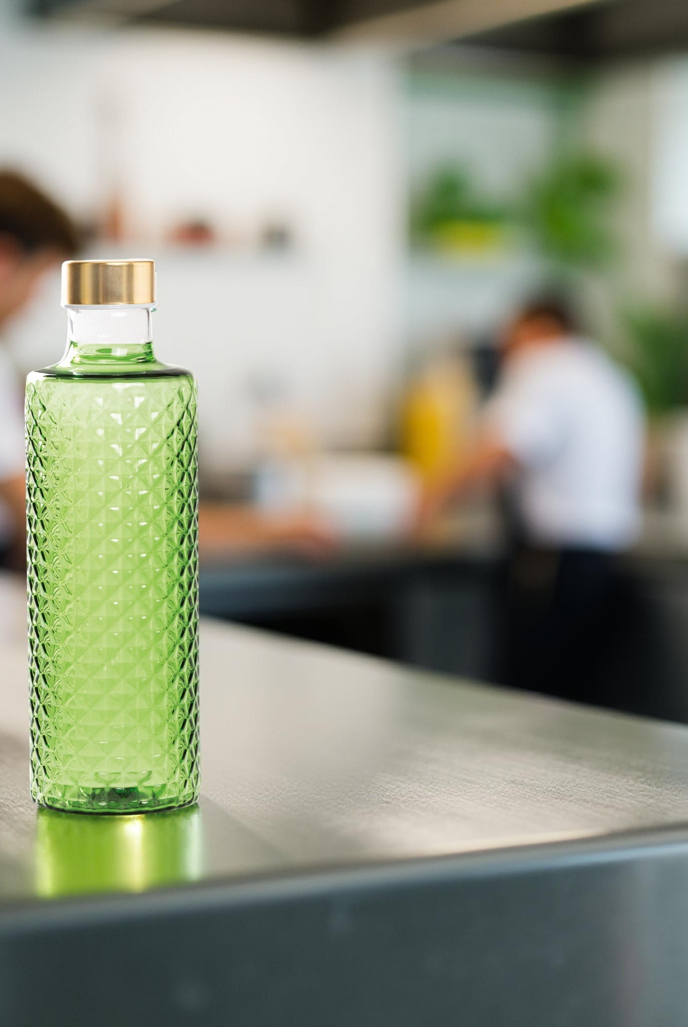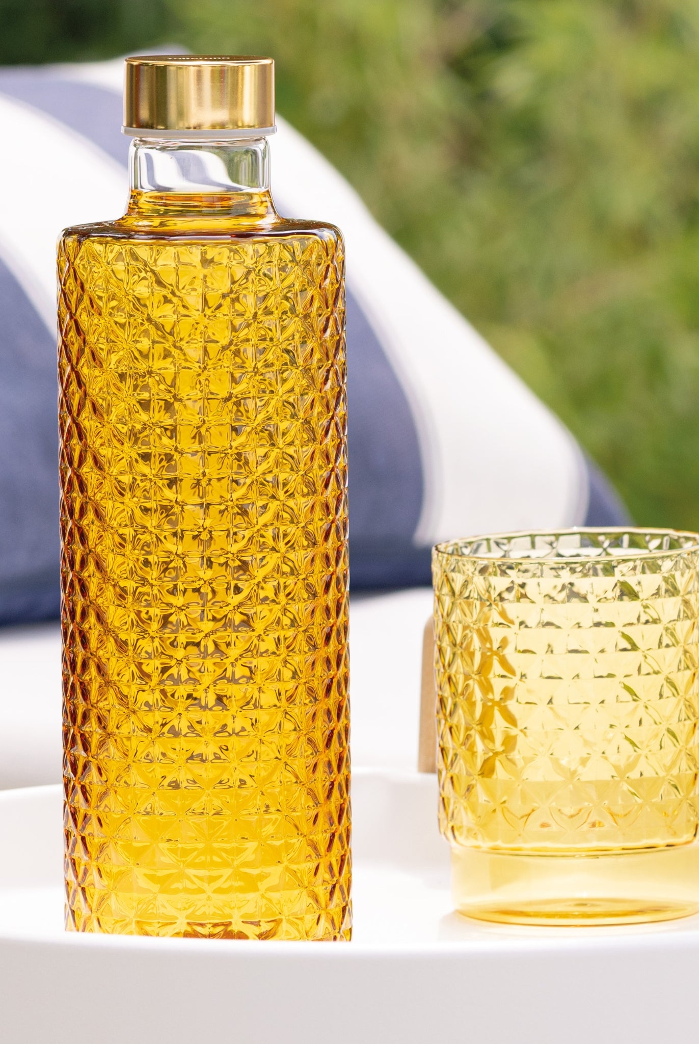 Mit 900 ml Fassungsvermögen, 24,5 cm Höhe und 9,6 cm Durchmesser liegt die Flasche angenehm in der Hand und bietet genug Platz für deine Lieblingsgetränke. Das spülmaschinenfeste Borosilikatglas sorgt für einfache Reinigung und lange Freude – ideal für den täglichen Gebrauch und besondere Momente.