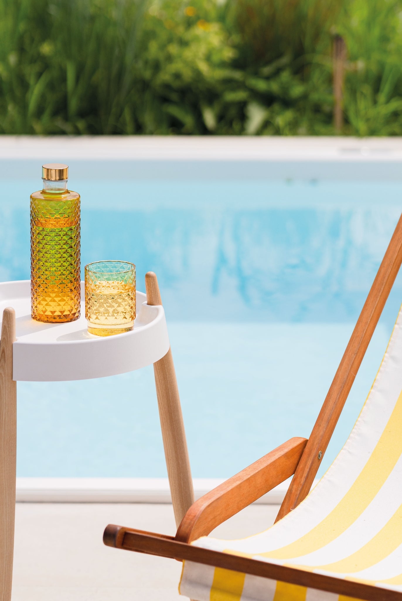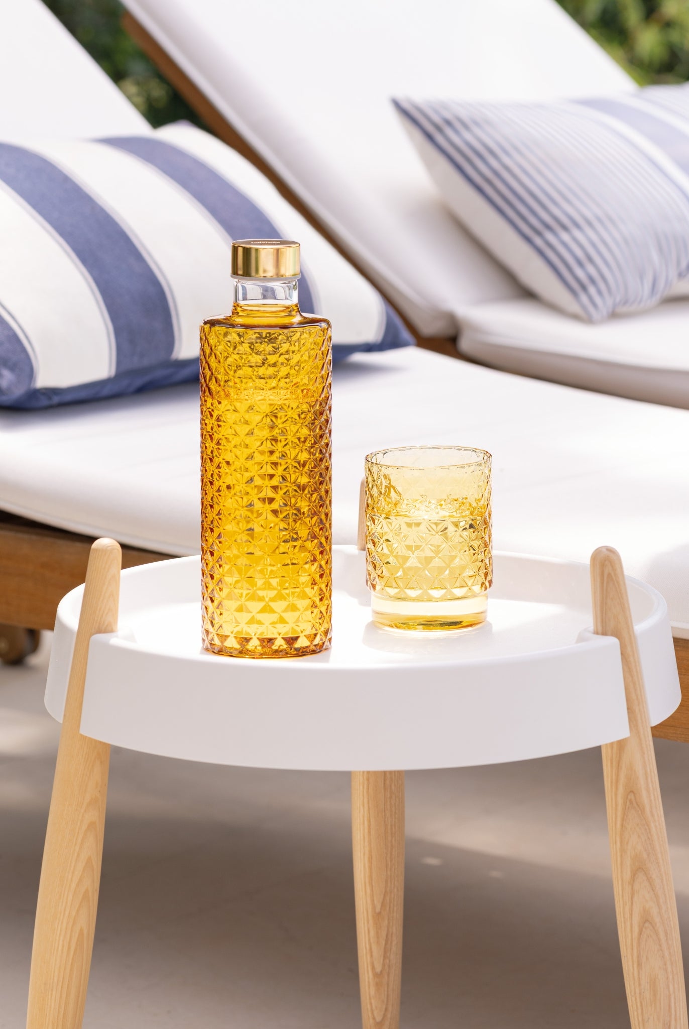 Die Flasche Handy von Zafferano verbindet mundgeblasene Handwerkskunst mit modernem, farbenfrohem Design. Aus durchgefärbtem Borosilikatglas gefertigt, ist jede Flasche ein Unikat, das mit Eleganz und Langlebigkeit überzeugt. Ob Wasser, Saft oder hausgemachte Limonade – mit dieser Flasche servierst du Getränke stilvoll und nachhaltig.
