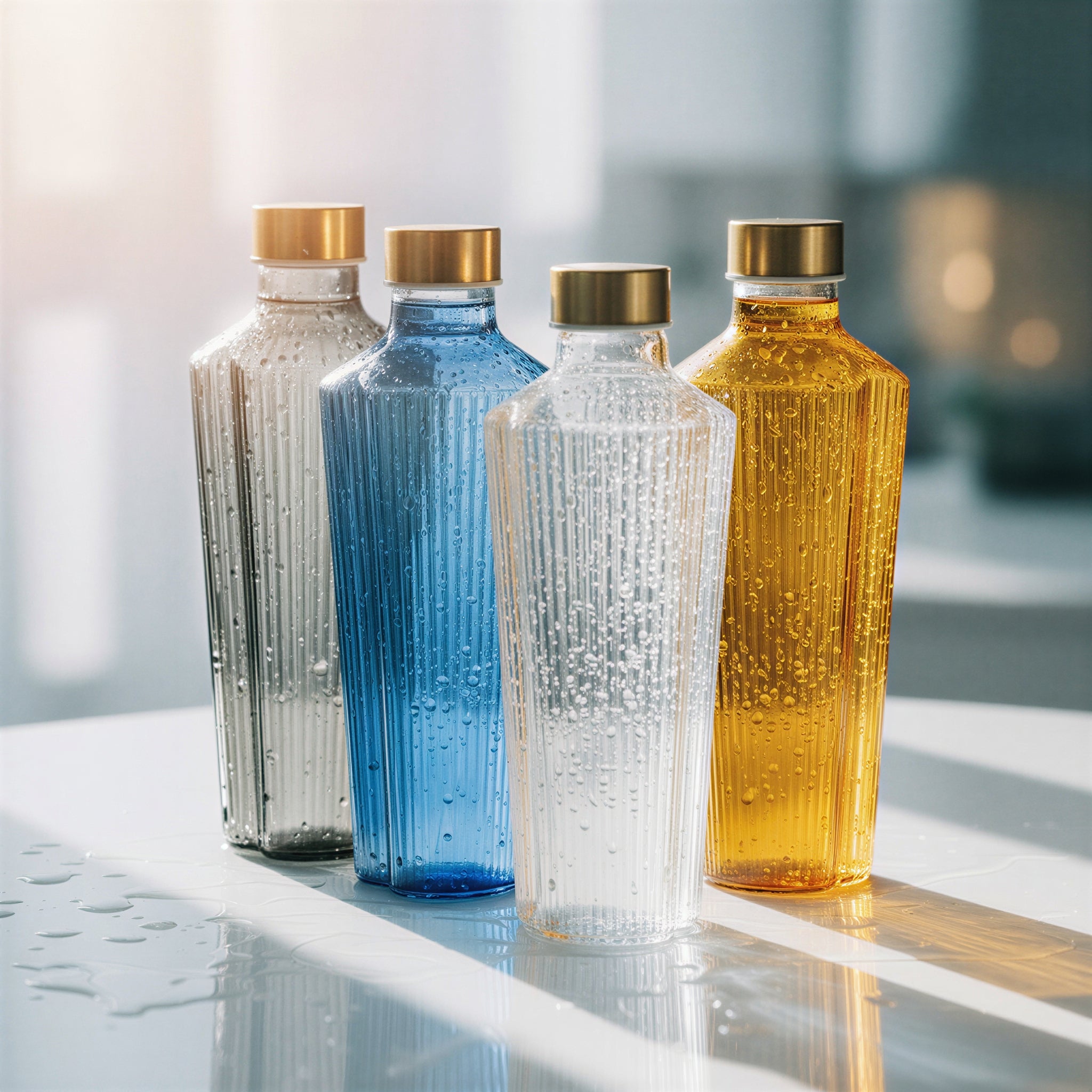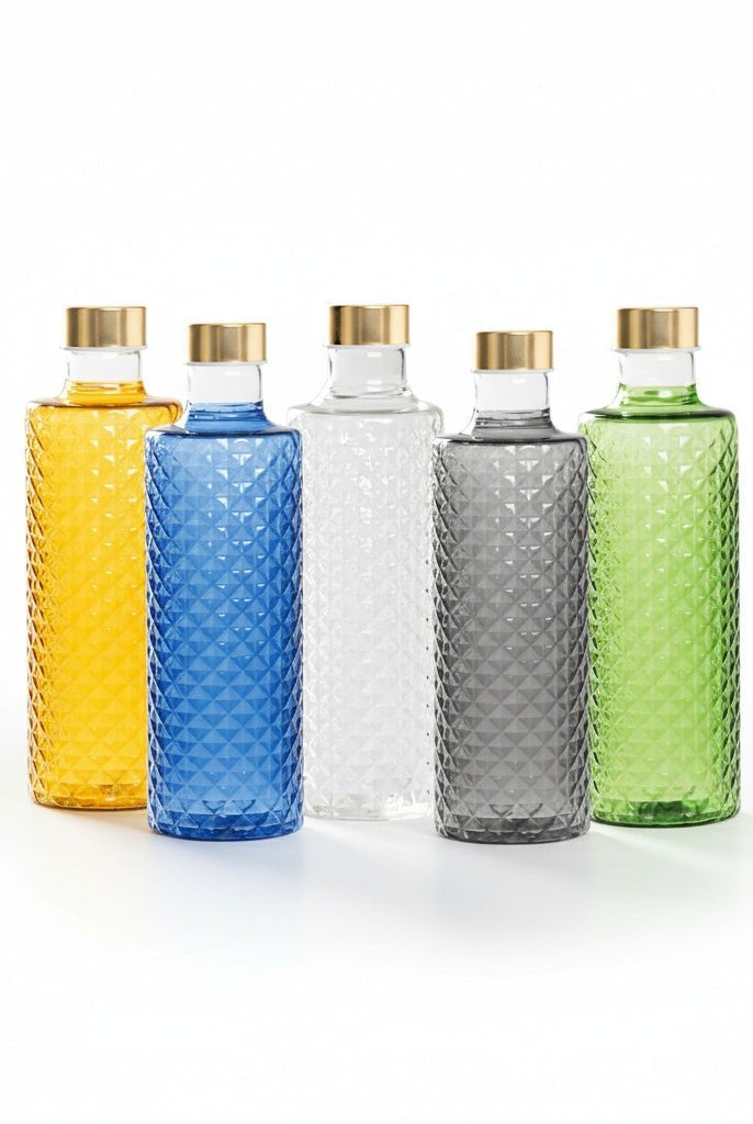 Die mundgeblasenen Flaschen Handy sind in vier Farben erhältlich: Royalblau, Grau, Amber und Transparent. Wähle deine Lieblingsfarbe oder kombiniere mehrere Flaschen für einen harmonischen, individuellen Stil.