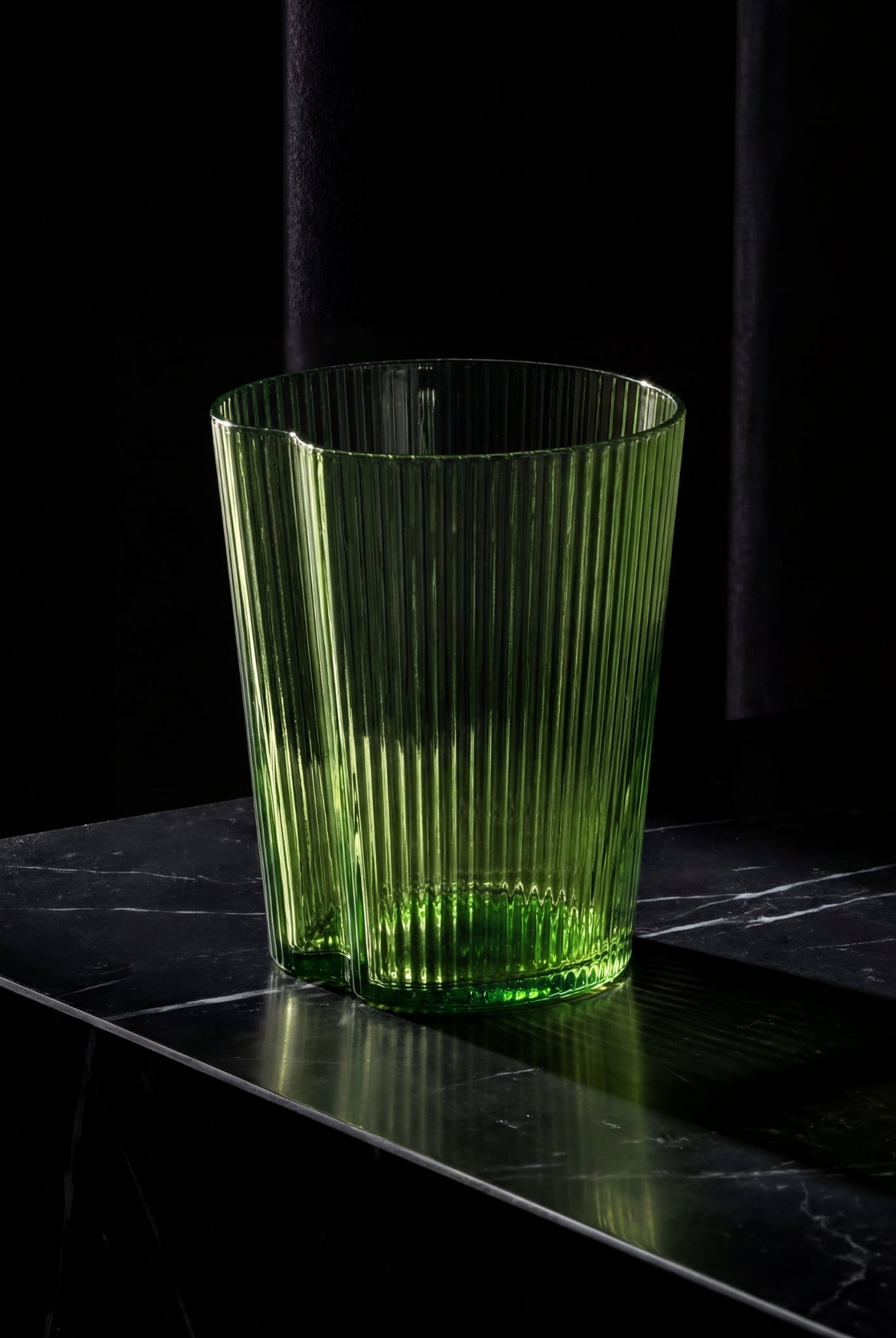 Das durchgefärbte Borosilikatglas ist leicht, robust und hitzebeständig. Es bleibt auch nach vielen Spülgängen klar und behält seine elegante Ausstrahlung. Jede Flasche wird mundgeblasen und ist damit ein Unikat mit eigener Charakteristik. Mit 900 ml Fassungsvermögen bietet sie genug Platz für Wasser, Saft oder hausgemachte Limonade, ohne auf dem Tisch zu wuchtig zu wirken. Die Form liegt angenehm in der Hand, sodass sich Getränke kontrolliert und komfortabel einschenken lassen.