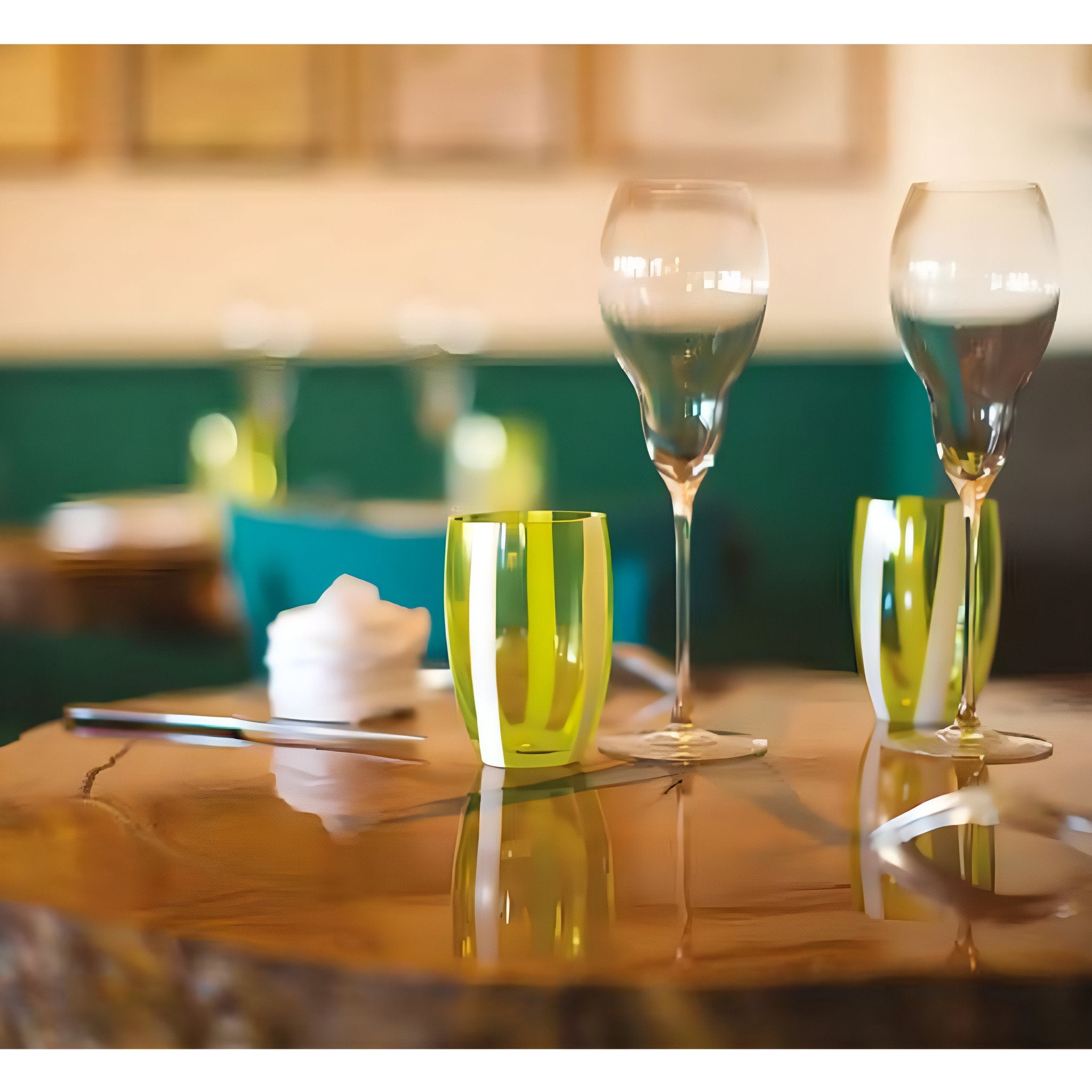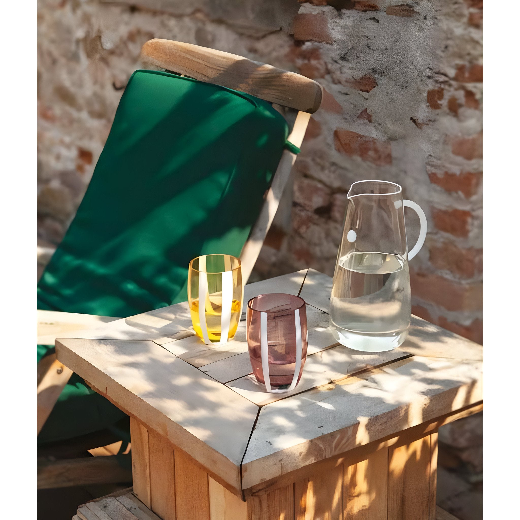 Gessato ist eine Serie von Gläsern aus gefärbtem Glas, die sich durch elegante und klassische Formen auszeichnen, aber einen originellen Look haben. Die weißen Streifen unterbrechen die Homogenität der Farben und schaffen einen einzigartigen optischen Effekt. Trinkgläser Gessato erinnern an die alte venezianische Glasbläsertradition und verleihen jeder Tafel ein festliches und zugleich frisches Bild.