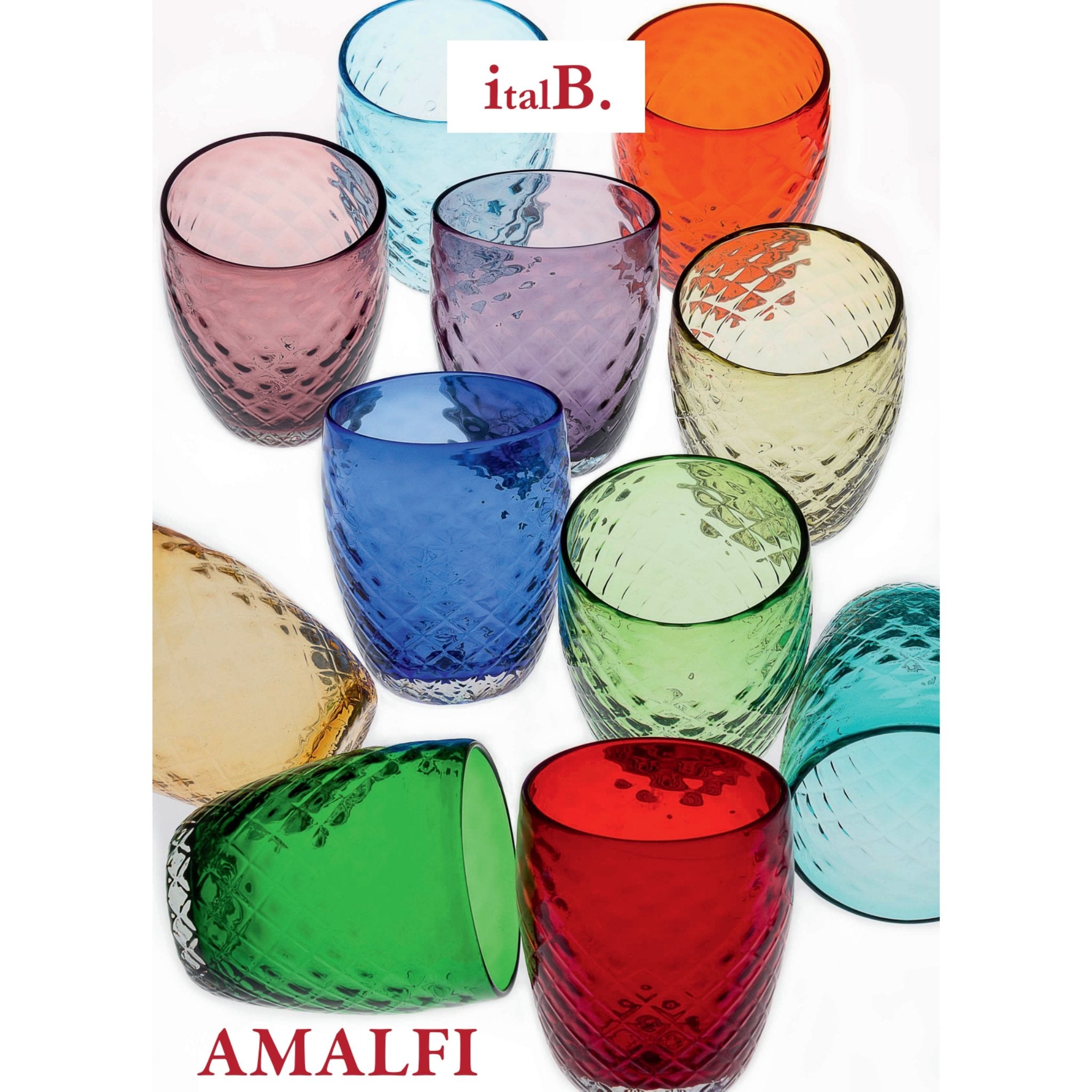Begrüßen Sie den Süden und verleihen Sie Ihren täglichen Mahlzeiten einen Hauch von Farbe mit unseren mundgeblasenen Amalfi-Gläsern.