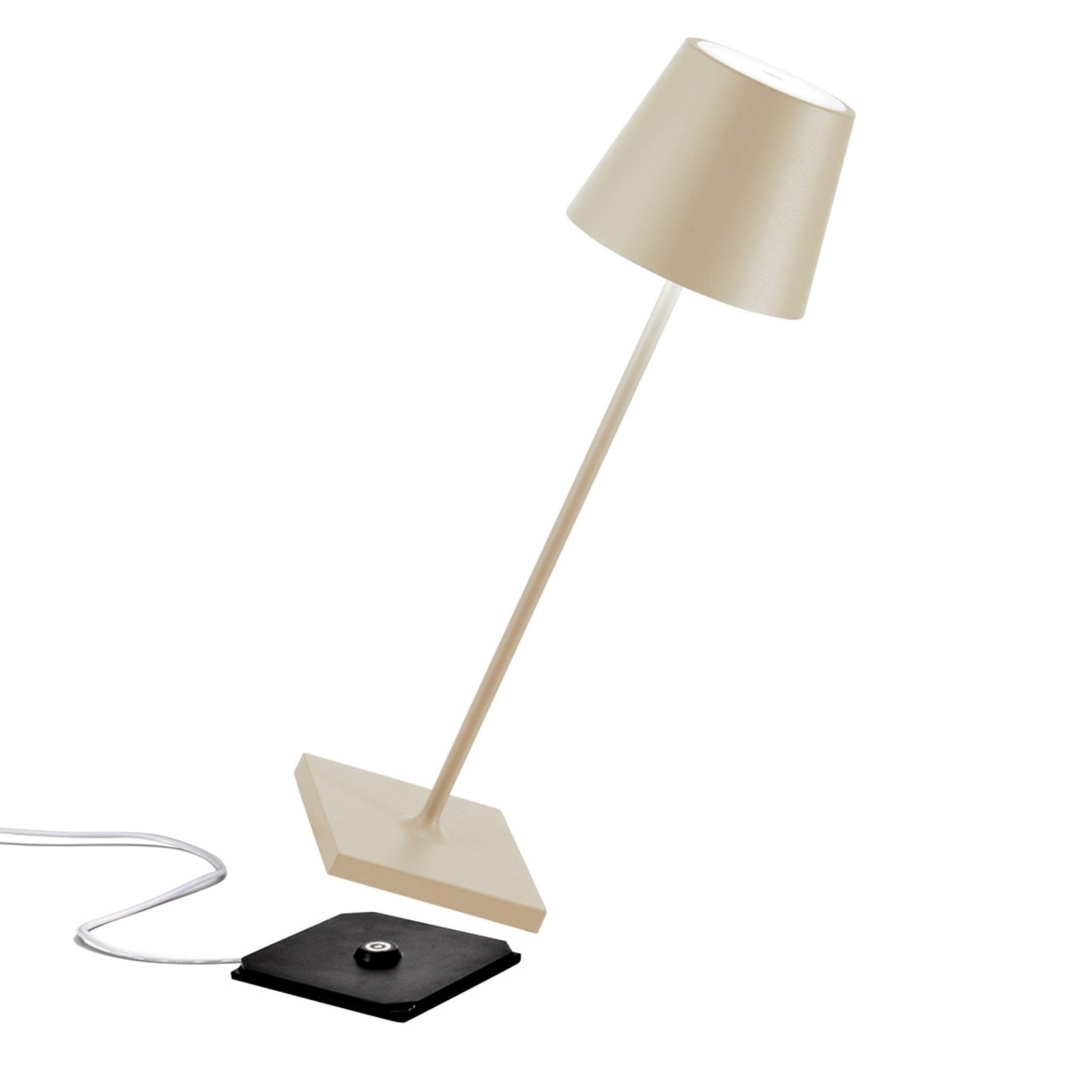 Entdecken Sie Poldina Pro, eine wiederaufladbare Tischlampe, die Design und Funktionalität vereint, um Ihren Raum mit stilvollem Licht zu erhellen. Mit ihrem Gehäuse aus lackiertem Aluminium und dem eleganten Polycarbonat-Diffusor ist diese Lampe nicht nur optisch ansprechend, sondern auch äußerst praktisch.